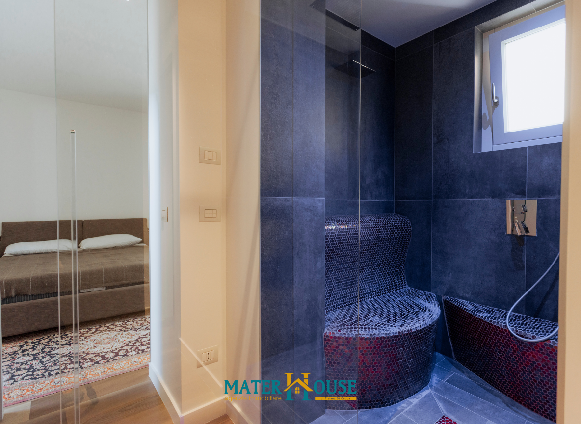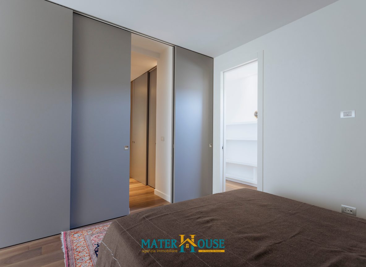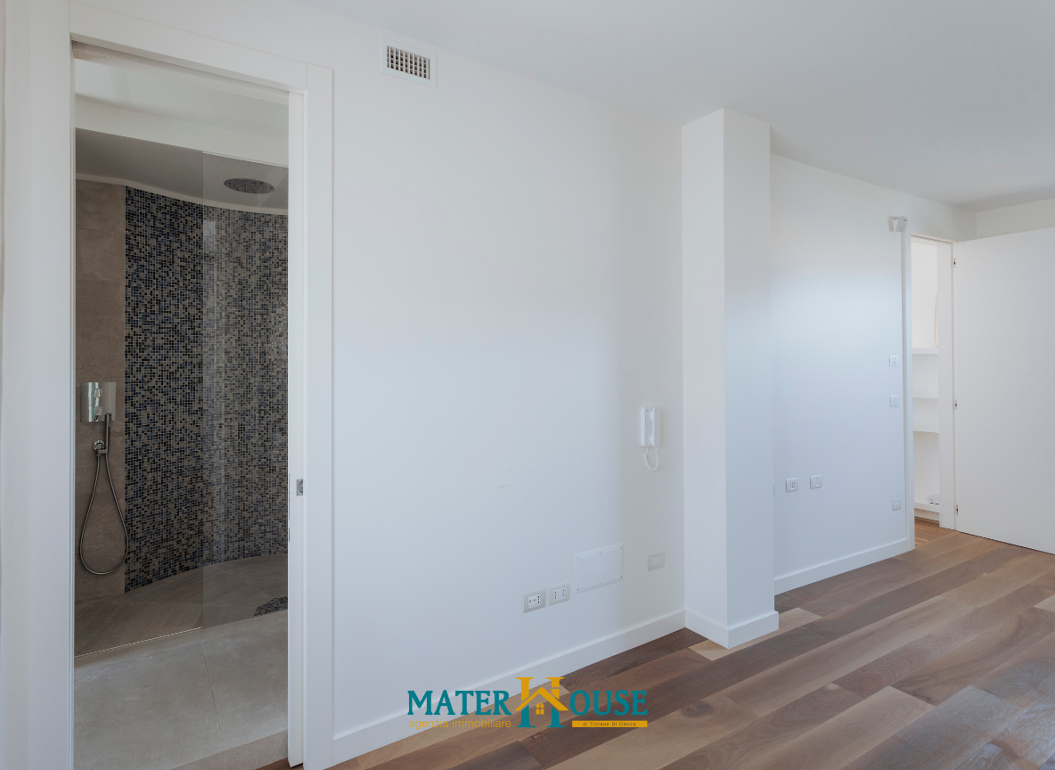 La zona notte, strategicamente isolata, è progettata per garantire privacy e silenzio. Le due camere sono concepite come suite indipendenti, ciascuna dotata di bagno privato. La Master Suite, in particolare, si distingue per una zona wellness con doccia a filo pavimento e una spaziosa cabina armadio. Un’area lavanderia dedicata completa la proprietà, garantendo massima praticità nella gestione quotidiana.